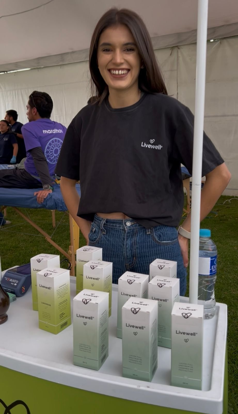 Durante la activación, los participantes pudieron conocer y probar los beneficios de Livewell, un producto desarrollado para aliviar molestias musculares y promover el bienestar físico, especialmente en contextos de alta exigencia como el deporte.